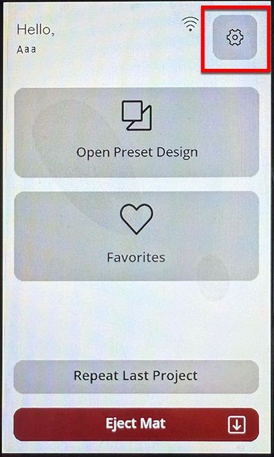 To begin, touch the Settings (Gear) button on the Singer Momento display screen.