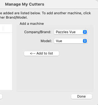 To setup Sure Cuts a Lot with the Pazzles Inspiration Vue cutting machine, go to the Cutter menu -> My Cutter -> Manage Cutters and add Pazzles Vue in the Manage My Cutters window.