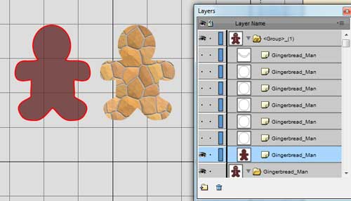 In this example we have added two gingerbread men, where one is filled with a solid color and the other is filled with an image pattern.